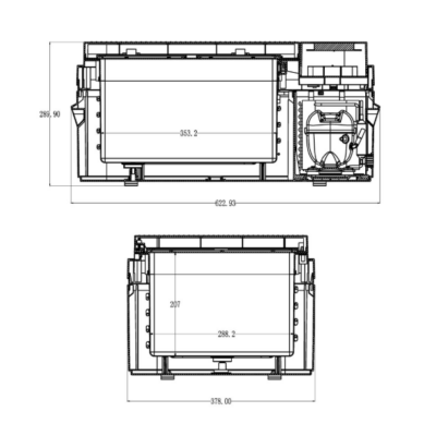 İç hazne ölçüleri: 353,2 × 288,2 × 207 mm