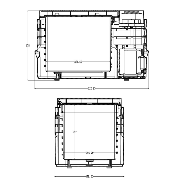 İç hazne ölçüleri: 351,6 × 286,7 × 297 mm
