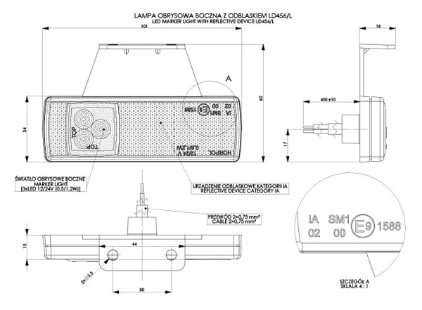 Kırmızı, turuncu ve beyaz renk seçenekleri bulunan Horpol LD 456/L marker lamba; ticari araçlarda yan konum işaretlemesi için ideal bir çözümdür ve araçların gece görünürlüğünü artırarak sürüş güvenliğine katkı sağlar.